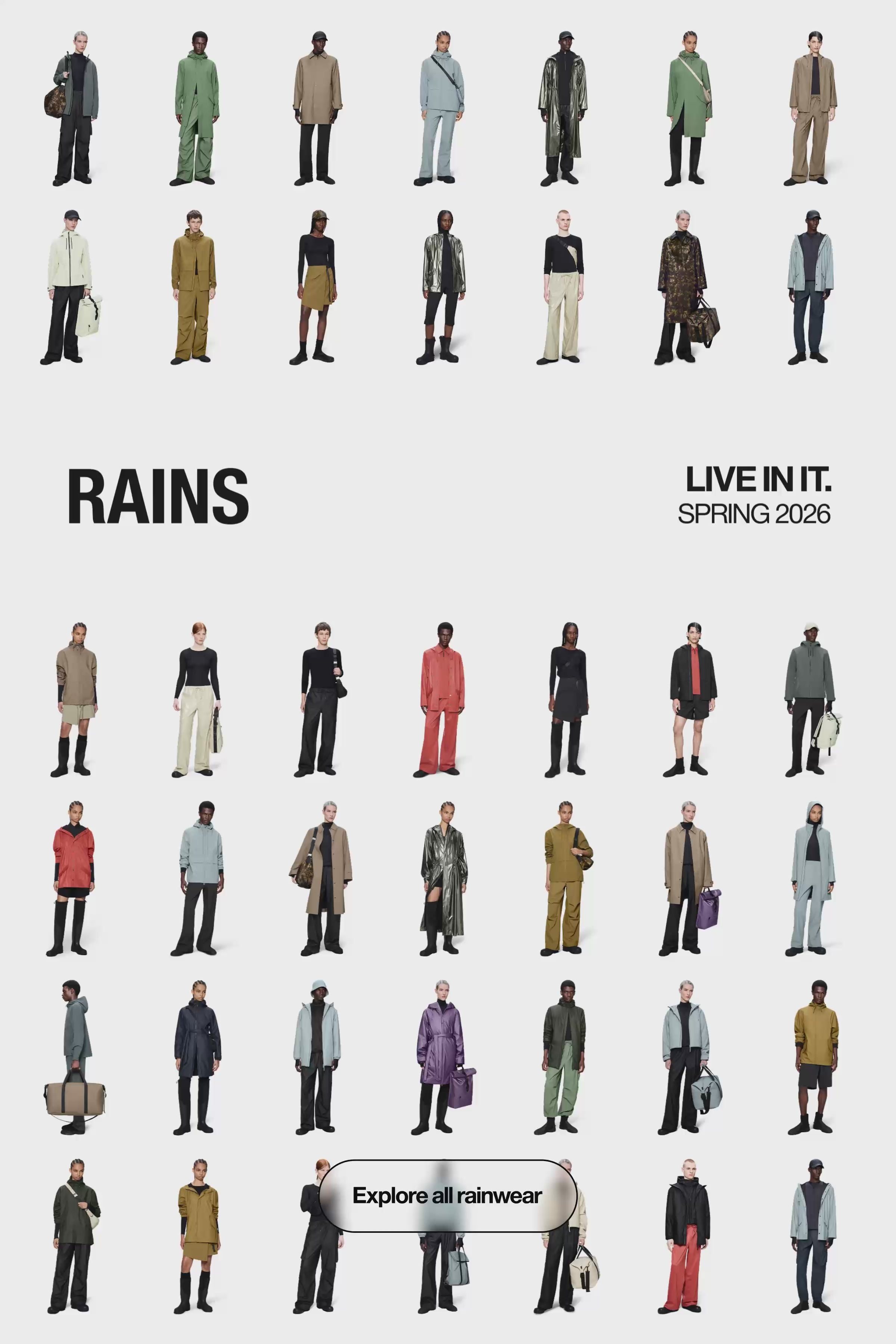 Explore Rains' top selections, showcasing an array of many different fabrics and silhouettes.